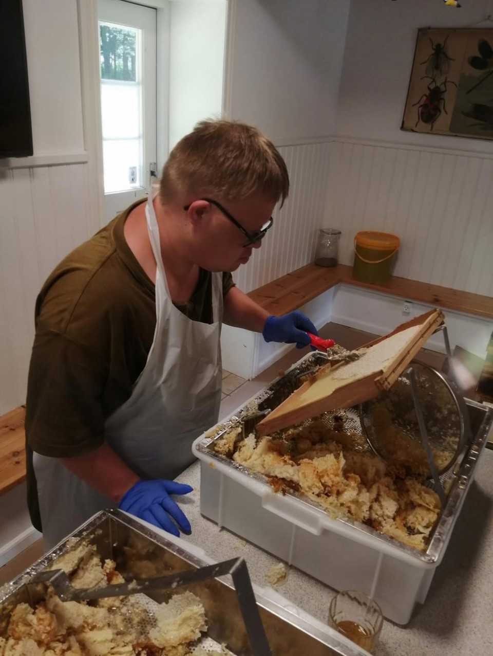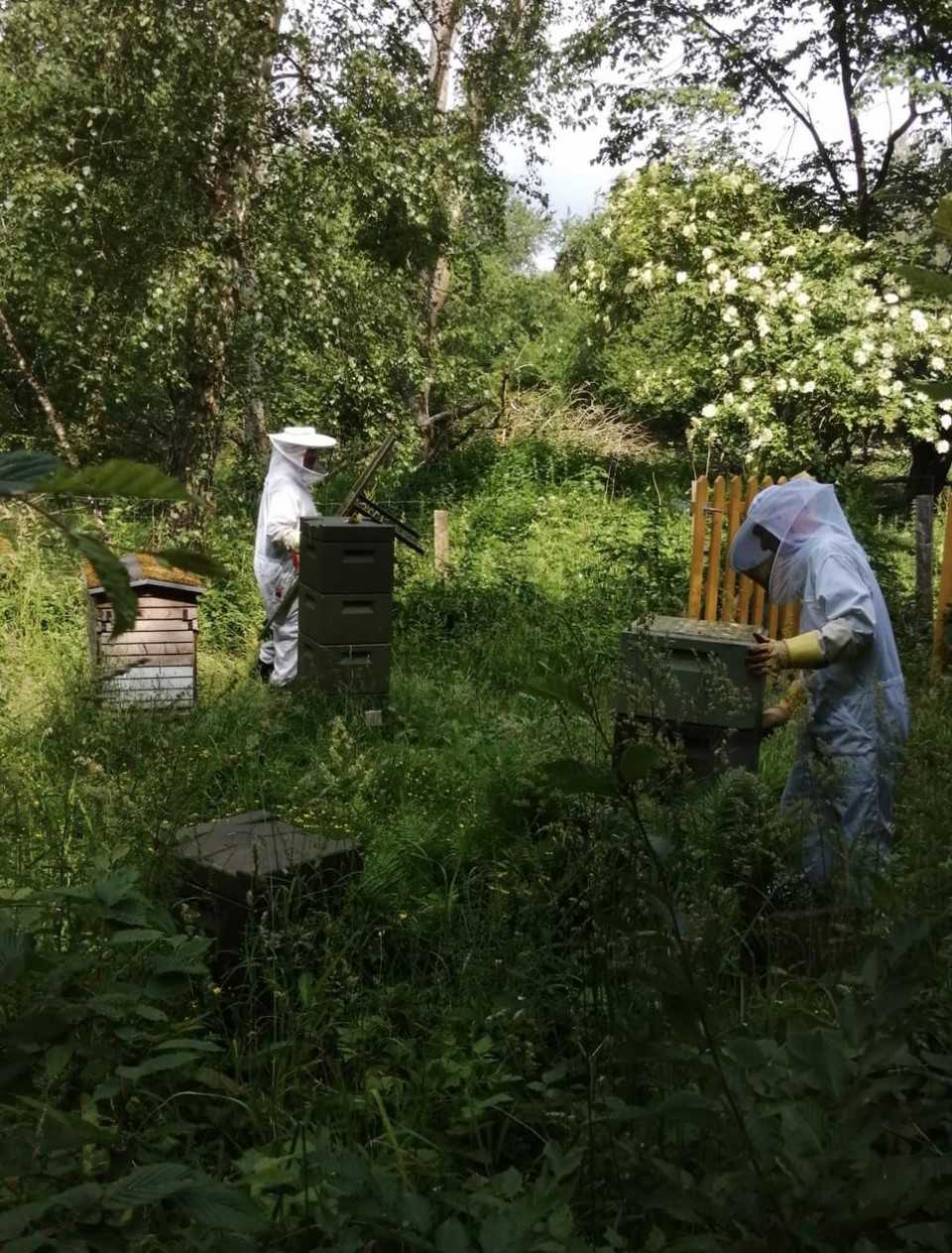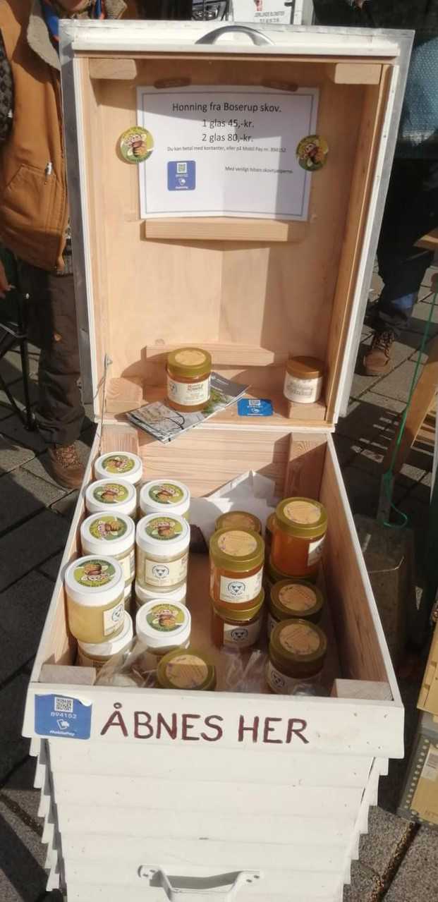 Vi har bistader i haven og producerer honning, som vi sælger til torvedag på Stændertorvet i Roskilde eller til arrangementer ved Vikingeskibsmuseet.