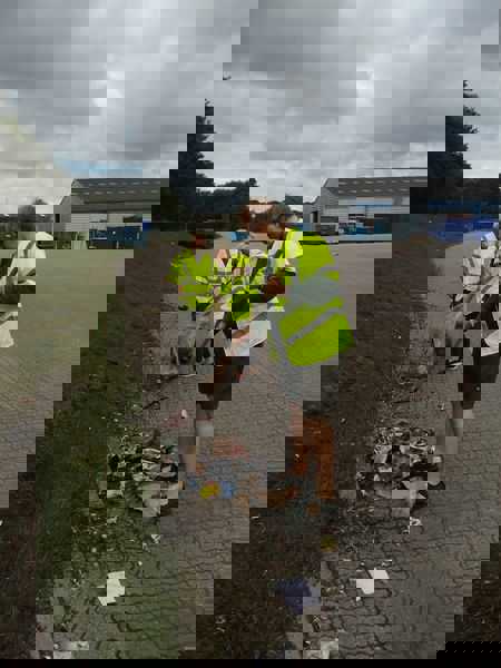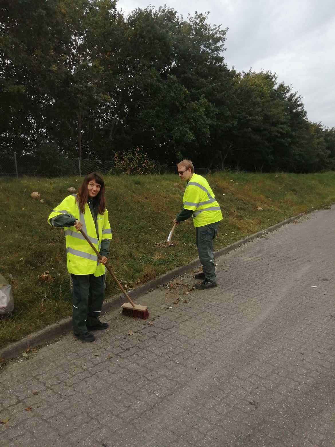 Her hjælper vi med at samle affald op og med at feje.